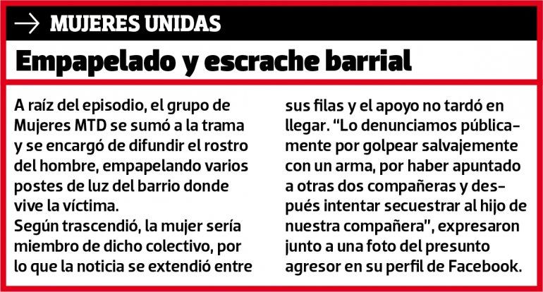 A raíz del episodio, el grupo de Mujeres MTD se sumó a la trama y se encargó de difundir el rostro del hombre, empapelando varios postes de luz del barrio donde vive la víctima.